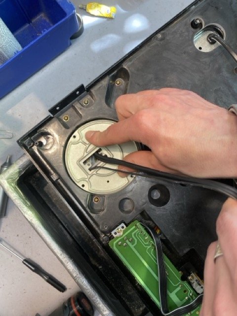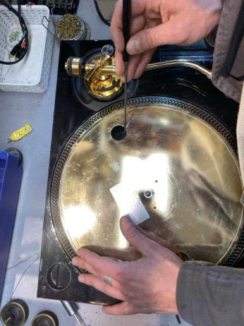 Der Schweiß unzähliger DJ Legenden, die ihre Handkanten genau dort auflegen mussten, um den Tonarm an die gewünschte Stelle zu justieren, hat seine Spuren hinterlassen.
